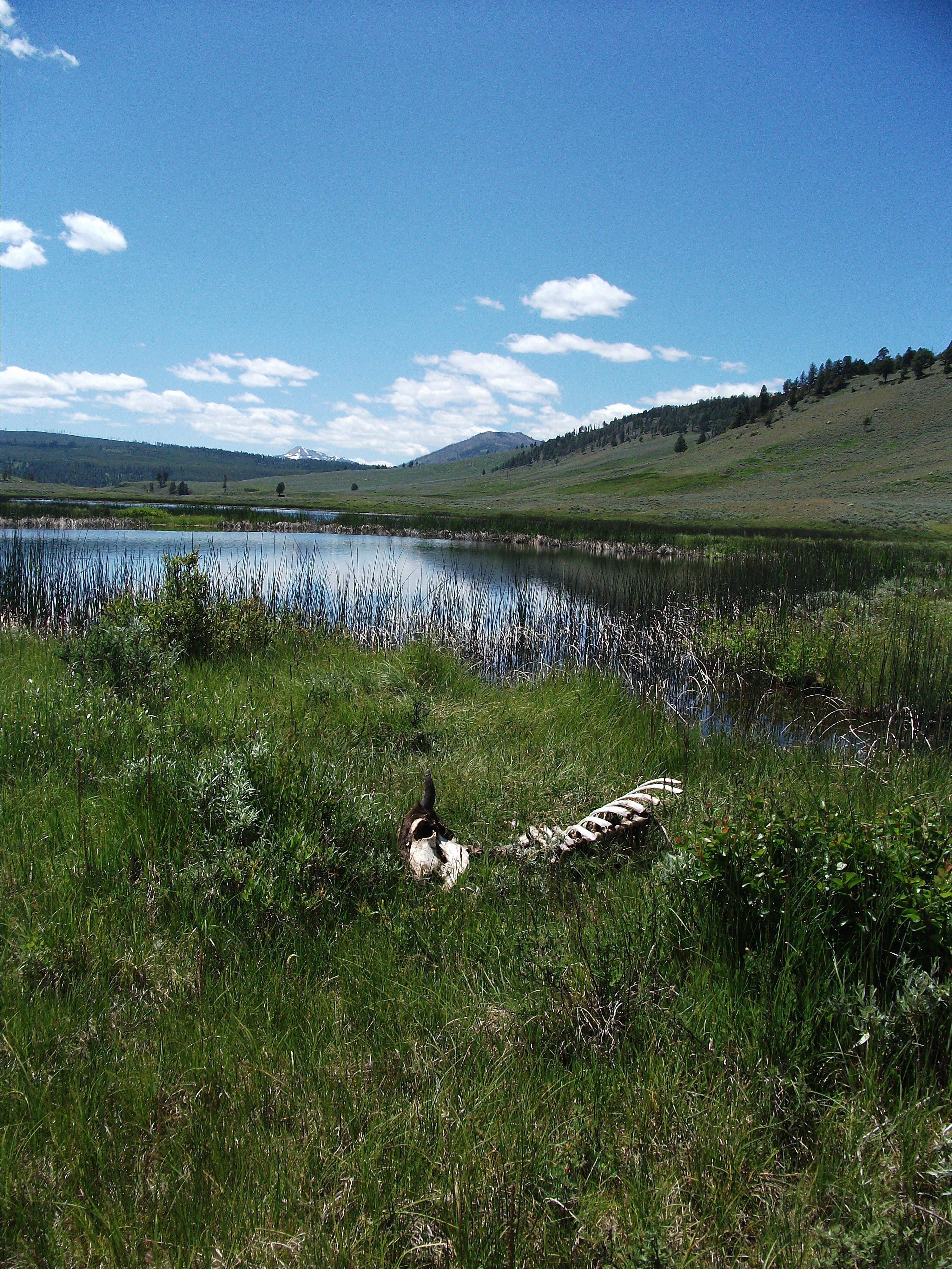 The strangest thing we saw, besides the freshly dismembered bison carcass nearby (fresh meat = carnivores coming in droves), was a coyote that had just given birth. My field partner had heard strange baby noises coming from a nearby rocky den but was understandably way too freaked to investigate. Soon after, a very fatigued coyote appeared looking for food. The coyote circled around the wetland to meet up with a bunch of hikers on a trail. They had no idea she was there until they got to a small bridge and they discovered that she meant to pass them. Well, they freaked. As she breezed by, they all froze and just started shouting that it was a wolf. At this point, my field partner and I climbed to higher ground so we could watch it all unfold. It was too amusing to not savor. The hikers finally let her pass, after basically peeing themselves and tripping over one another. It was classic. Once free, she climbed up next to us and began hunting a ground squirrel a few feet away. It was so cool to see her spring into action so close up. She was so fast…but the squirrel was even faster and she ended up empty handed in the exchange. After catching her breath for a second, she gave us a knowing little nod, turned away and pranced right by the freaked out hikers again and went about her business elsewhere. It was a fantastic little moment.